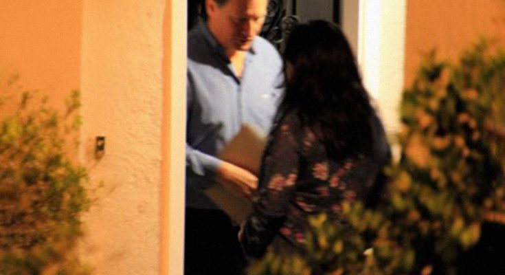 I watched from down the street as he got out of his car, straightened his shirt, and walked up to the front door.